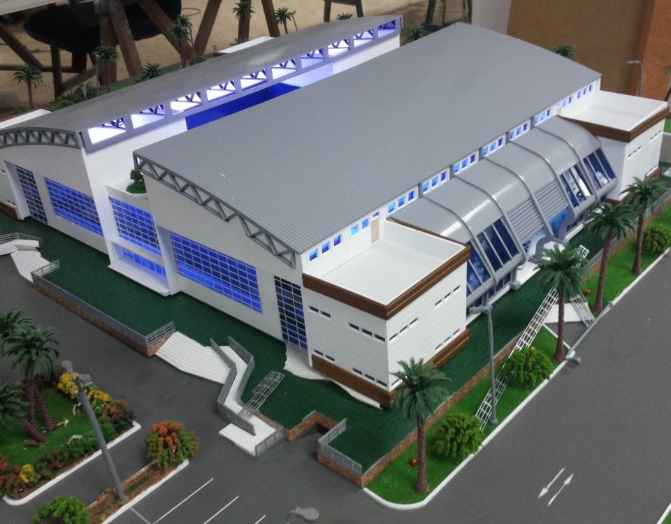 This 2.5m x 2.5m model was commissioned as part of a public consultation process for a proposed development just off the M1. Comprising 6 A0 sized sections, the purpose of the model was to demonstrate how high embankments and landscaping around the site would screen it from surrounding villages. For this reason it was important that the proposed on-site levels and surrounding topography were all accurately recreated. The buildings are only shown as massing blocks due to the small scale (1:1250). Each metre is represented by just 0.8mm, so that the 16 metre high commercial buildings shown on the model are only approx. 13mm high.